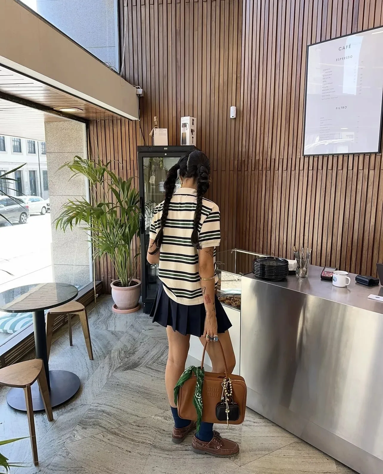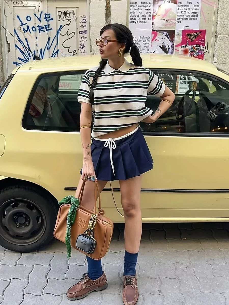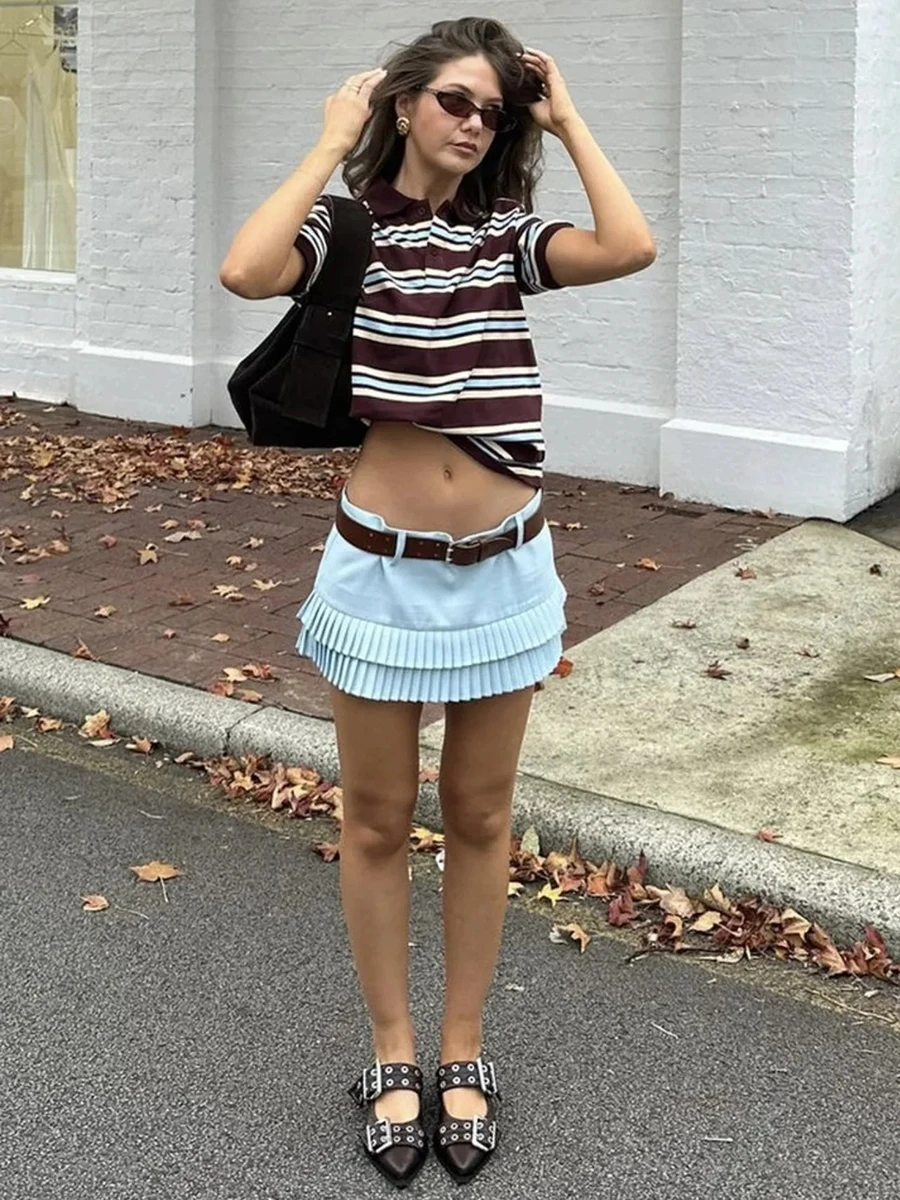 Striped Contrast Short Sleeve T-shirt Women Buttons Turndown Collar Tee Shirt Spring New Streetwear Vintage Chic Top Tees 2025