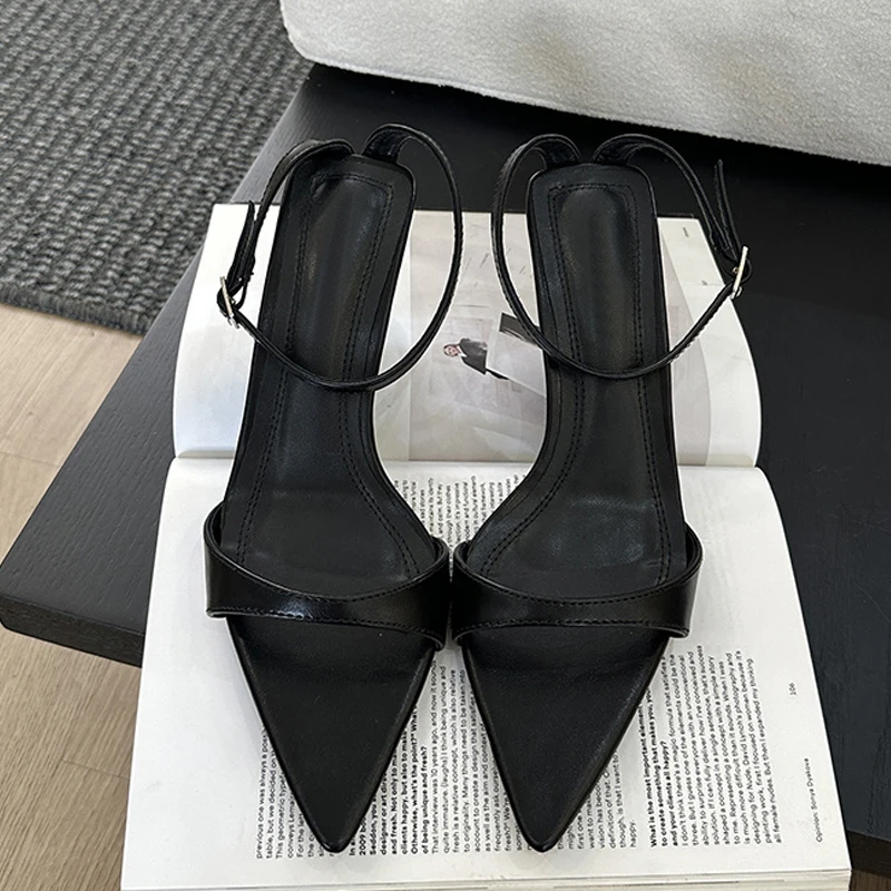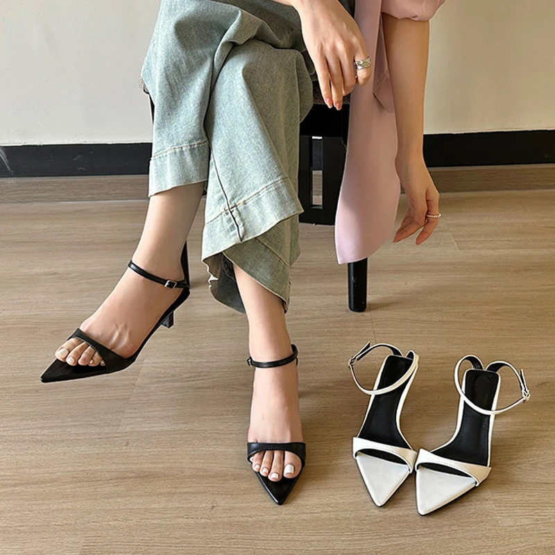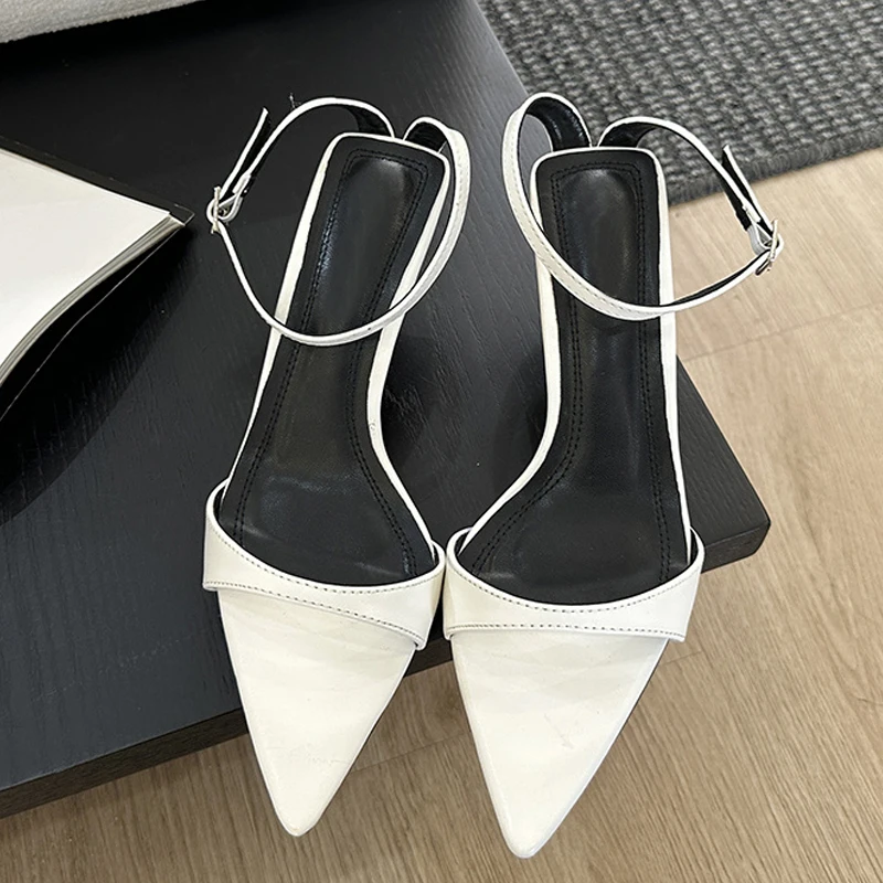 Liyke Fashion Black White Sandals Women 2025 Summer Gladiator Pointed Toe Thin Heels Casual Roma Sandalias