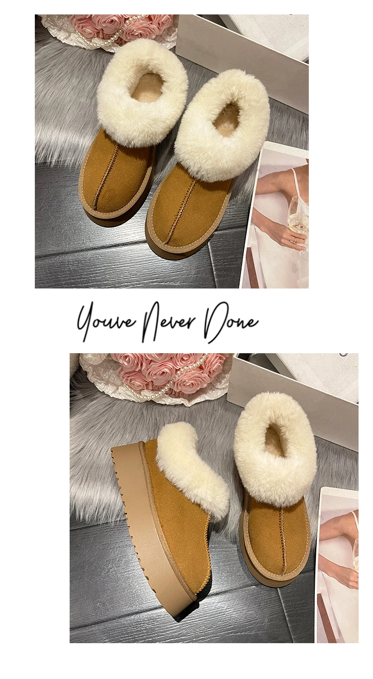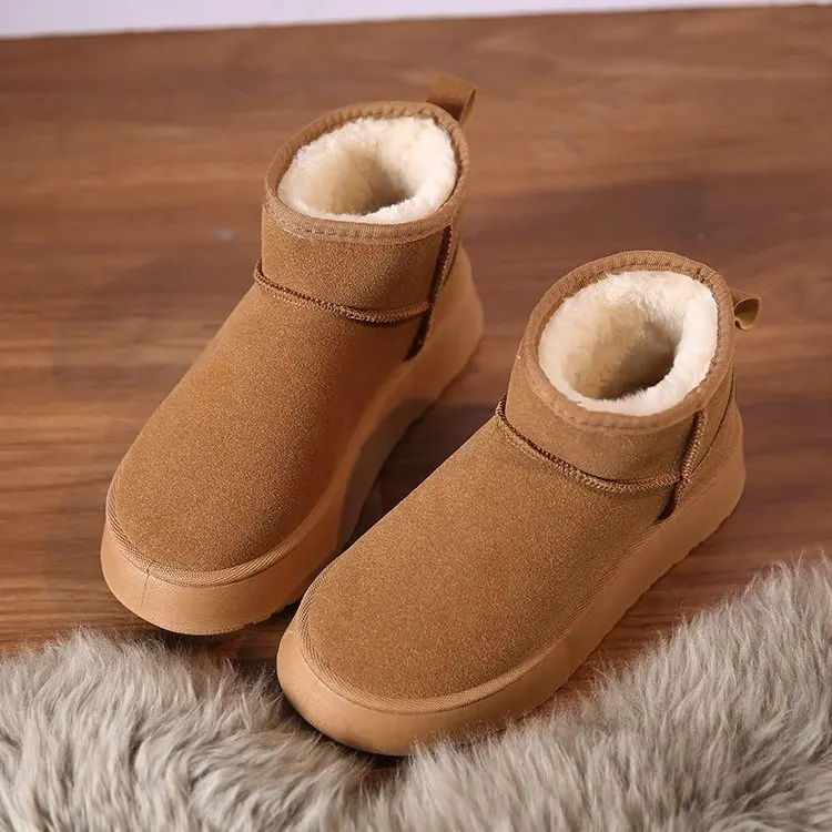 New Winter Women Short Plush Warm Snow Boots Flats Casual Shoes Suede Fur Chelsea Ankle Boots Platform Ladies Shoes Botas Mujer