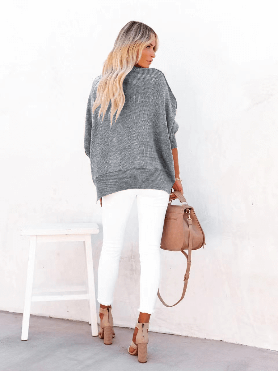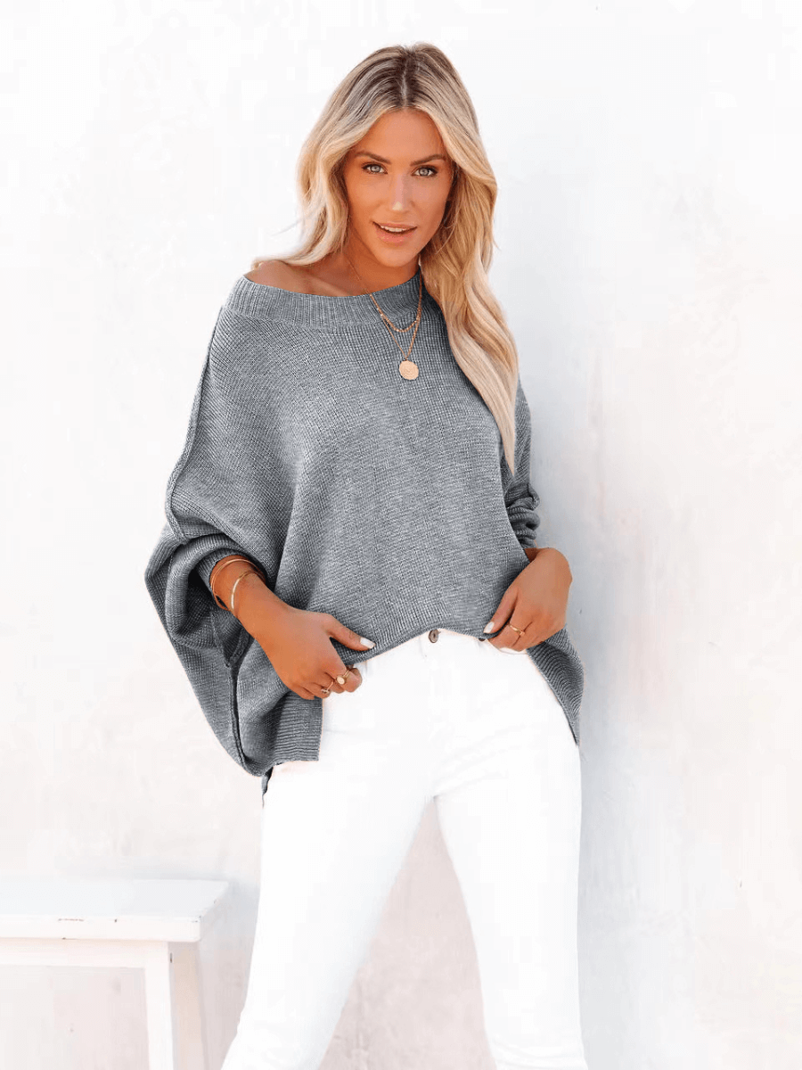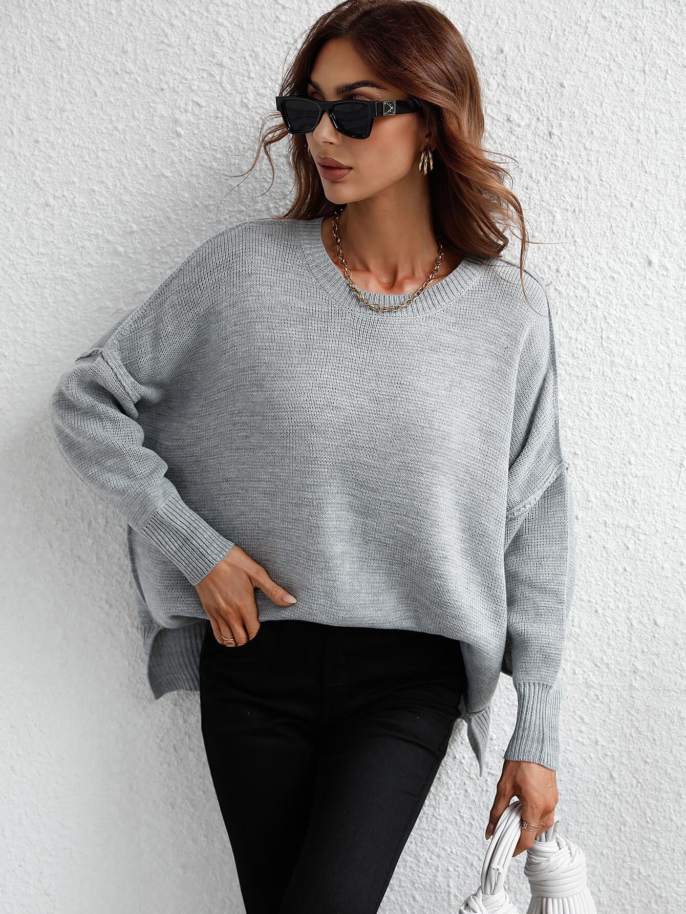 Update your knitwear collection with this_oversized sweater boasting a relaxed silhouette and a smoke grey_tone.
