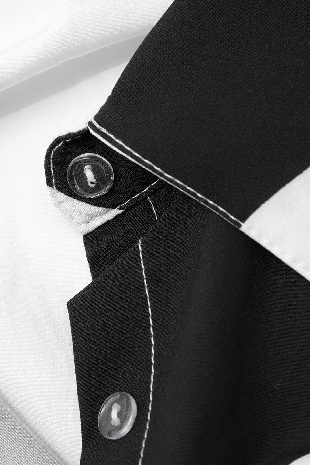 Paloma Black and White Line Printed Button Up Shirt and High Waist Wide Leg Pants Set