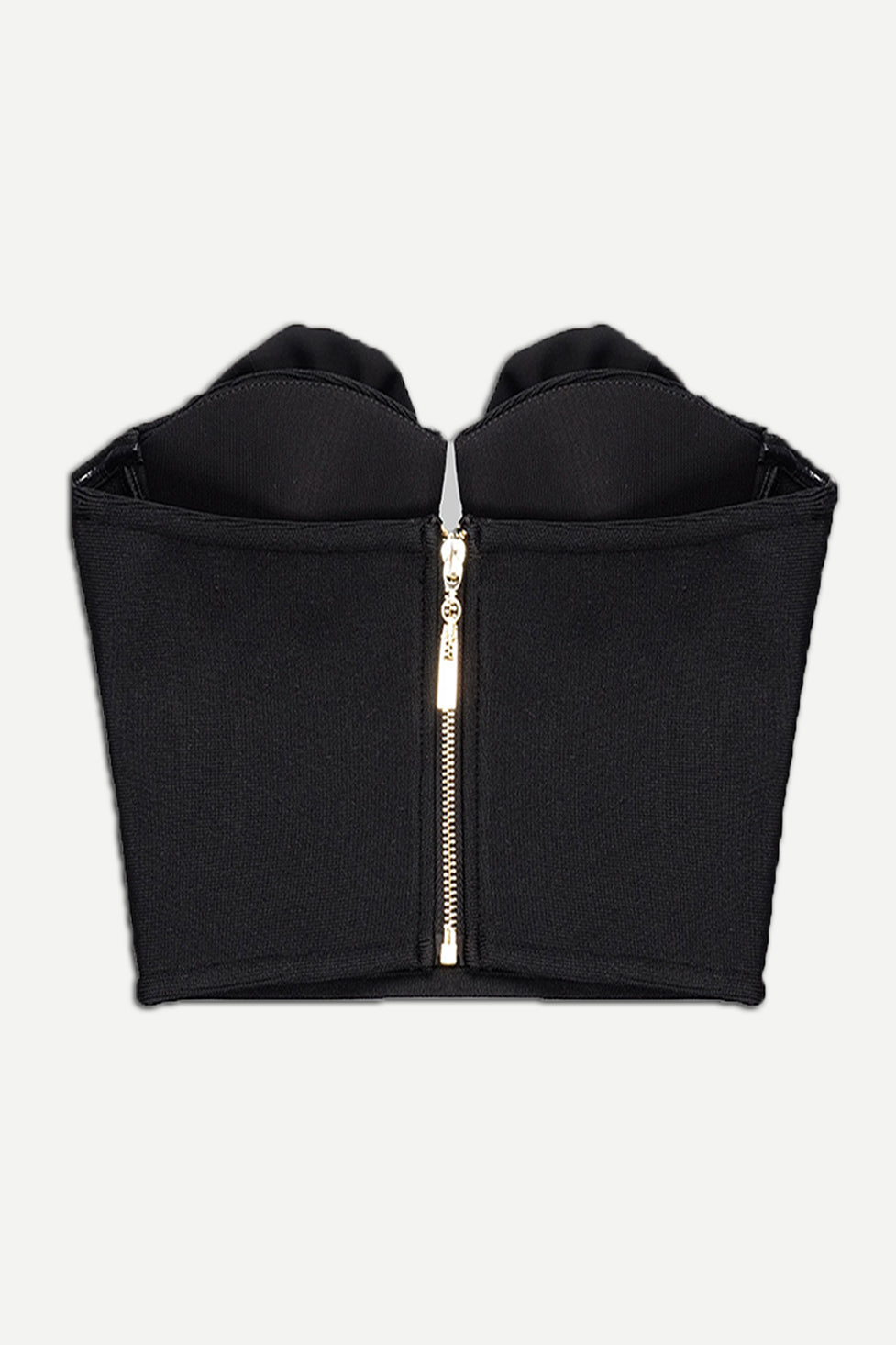 Transform your look with our Peyton Flower Bustier Bandage Top in black. This top features a gorgeous floral design that adds a touch of femininity to any outfit. With its bustier style, it will enhance your curves and make you feel confident and beautiful. Add this top to your wardrobe for a stylish and versatile piece!