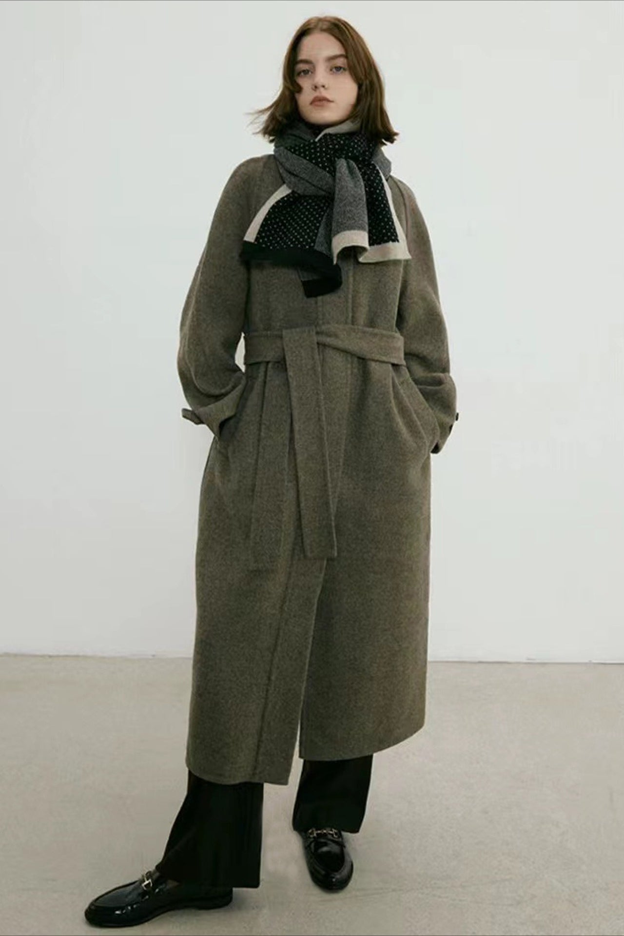 • Length: Regular Length• Composition: Cashmere-like Fabric• Craftsmanship: Yarn-dyed, Woven• Knitting Method: Weft Knitting• Style: Business, Versatile, Elegant• Function: Warmth• Details: Polka Dots