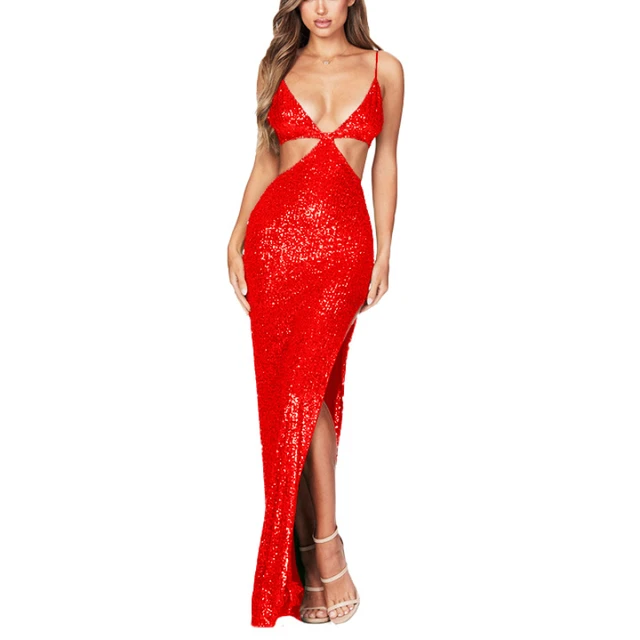 ![Sexy Hollow High Waist Slit Evening Dress Fashion Sequined Backless Sleeveless Elegant Party Dresses Solid Long Graduation Dress 4 undefined]()