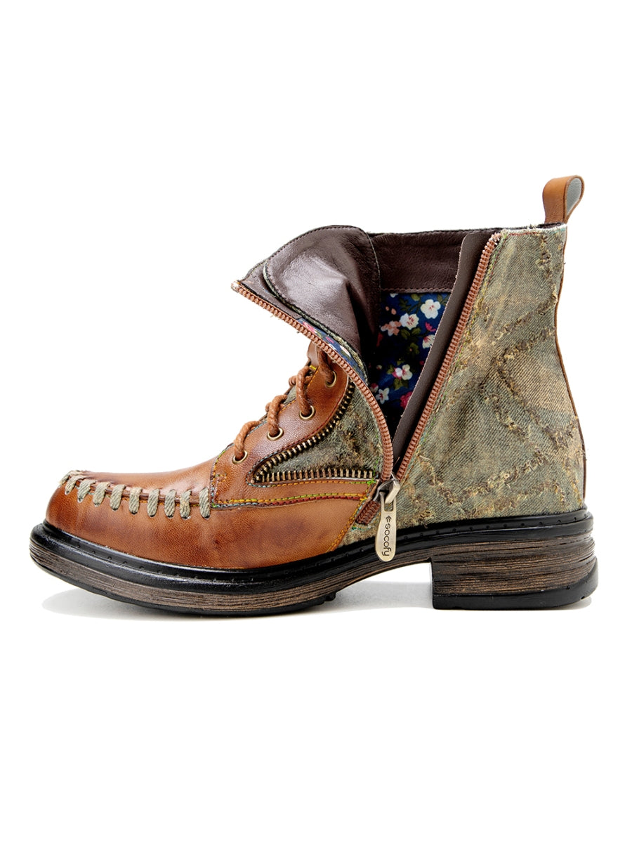 Revamp your boot rotation with this lace-up leather pair boasting open zip trimed_shafts and chunky treaded soles for stylish strides that pair effortlessly with jeans or leggings.