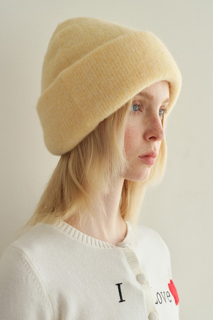 Solid Color Wool Blend Double Layer Seamless Thick Knitted Hat