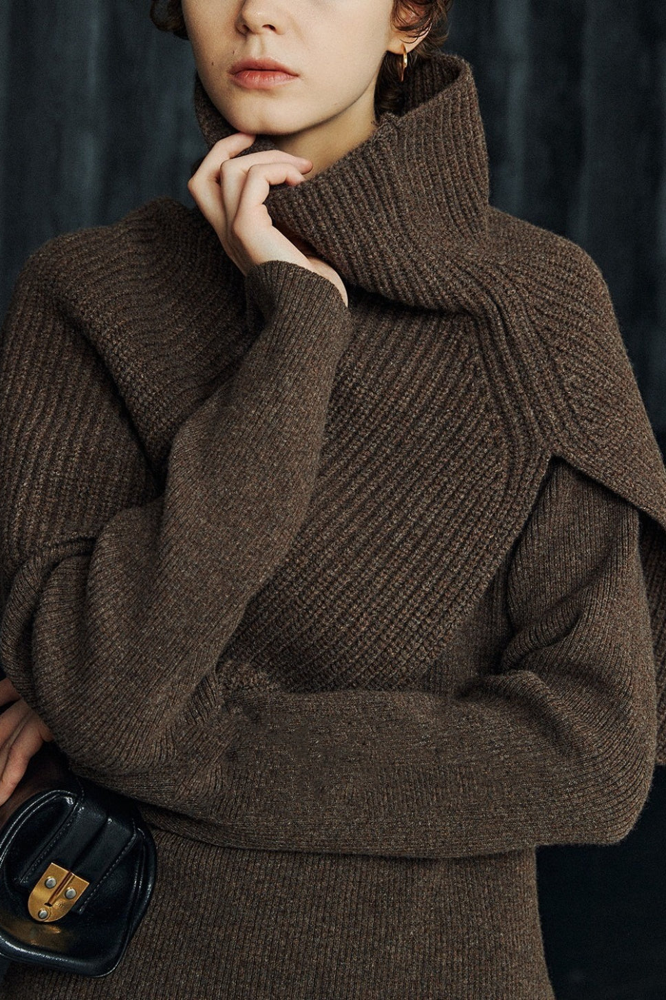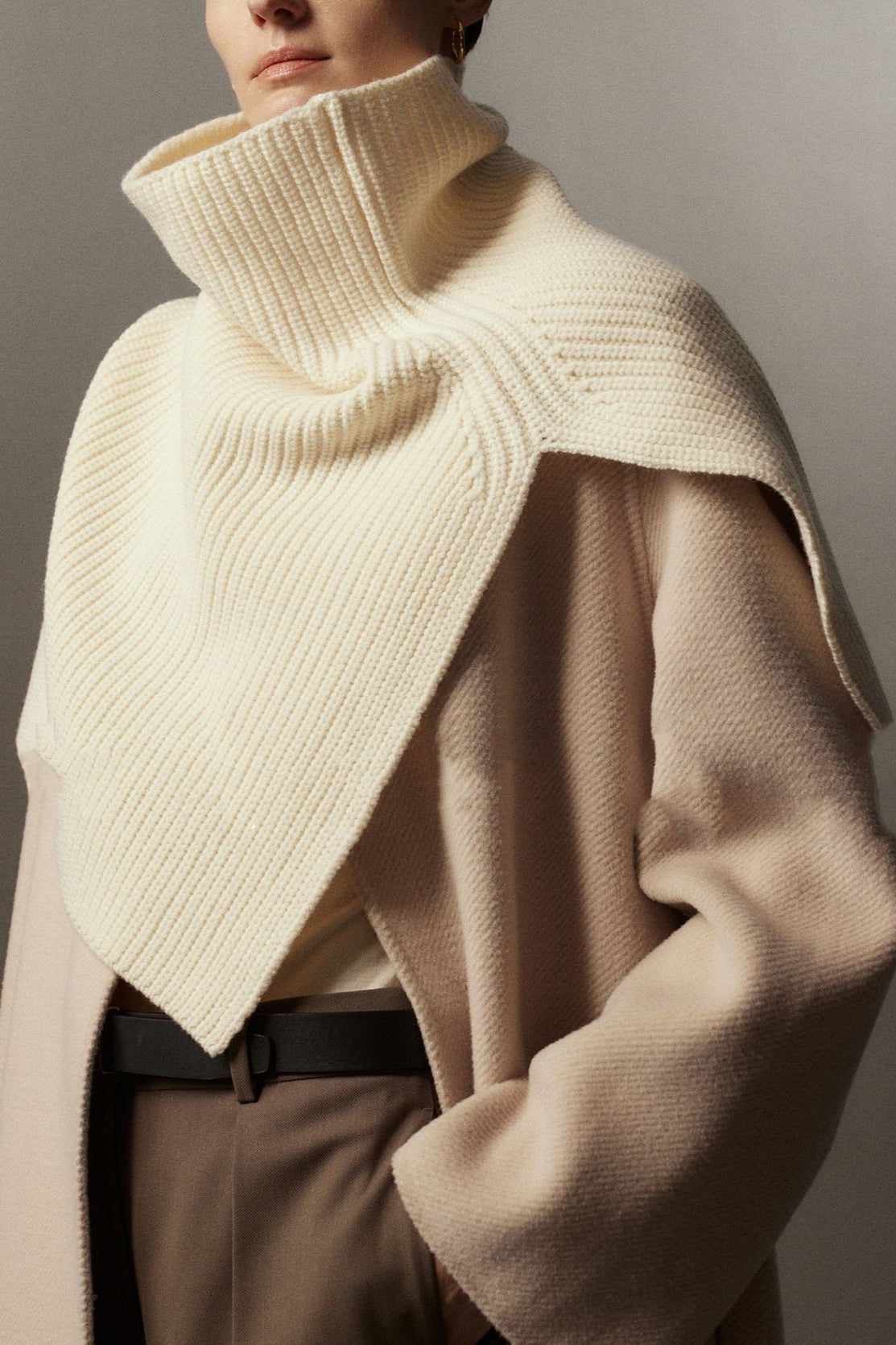 Super Fine Merino Knitted Turtleneck Split Scarf