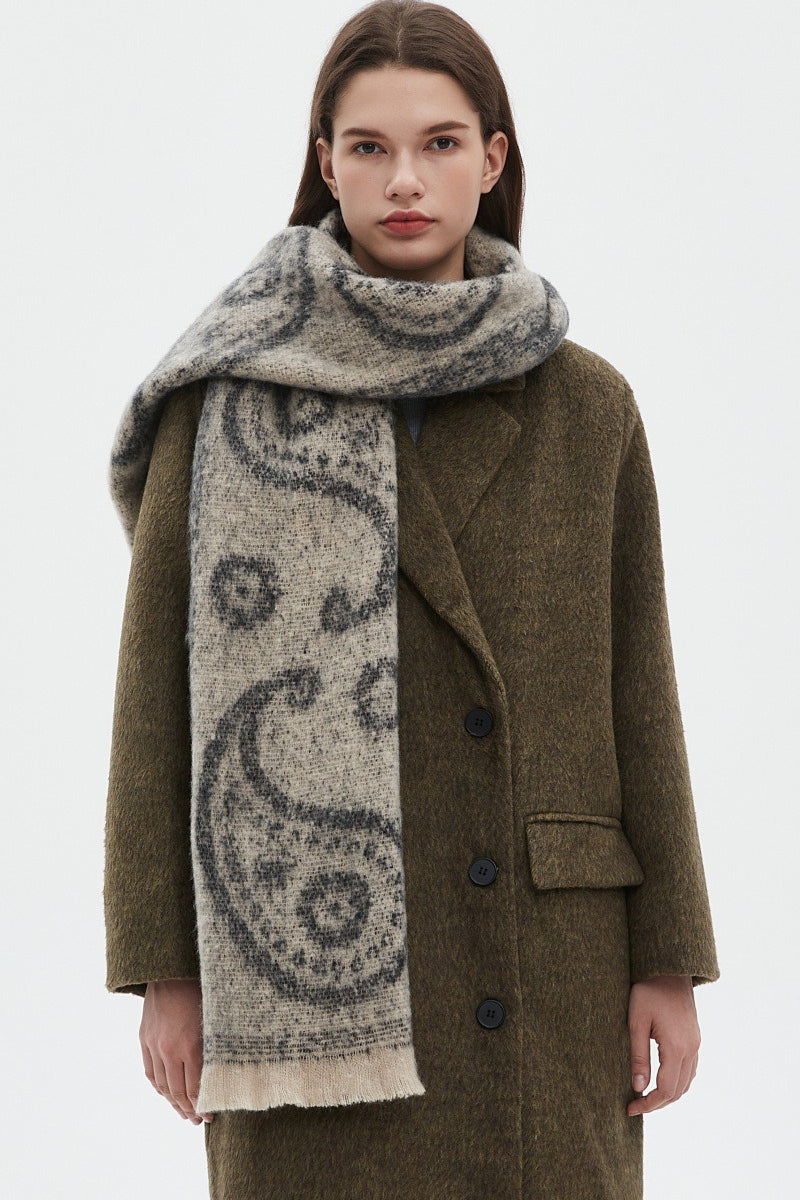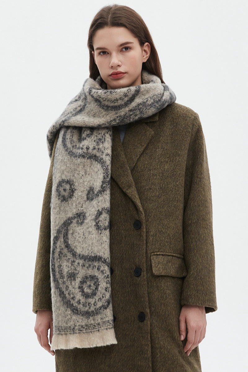 Thick Paisley Jacquard Short Fringe Scarf