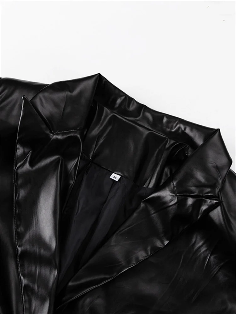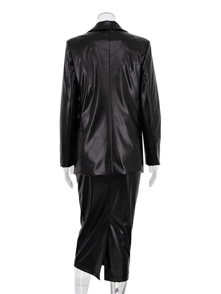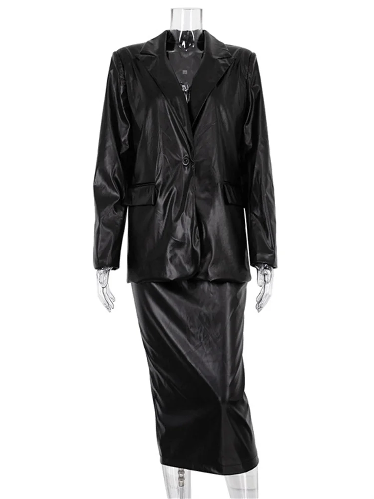 Black Pu Maxi Skirt 2 Piece-Set Women Slim Patchwork Elegant Pocket Fashion High Street Clothes Ladies Long Skirt Sets New