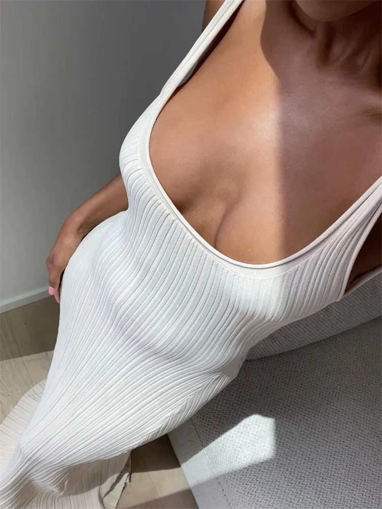 Knit Ribbed Slim Maxi Dress Female Backless Scoop Neck Fashion Elegant Party Looks Long Dress Patchwork Knitwear Dress
