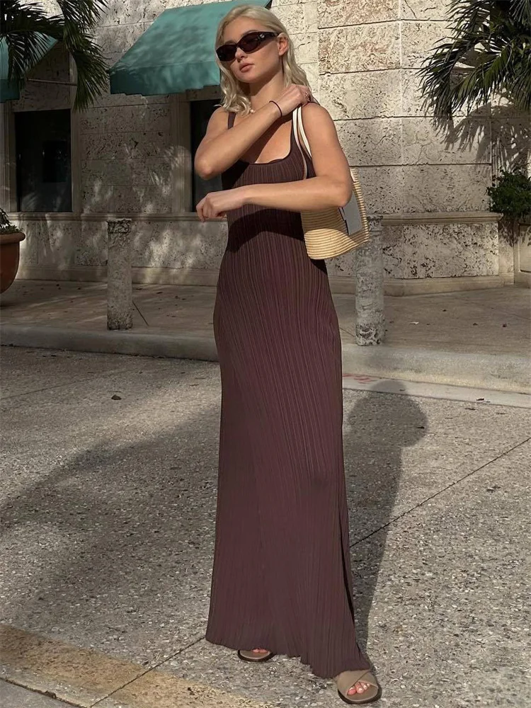 Ootddress Knit Ribbed Slim Maxi Dress Female Backless Scoop Neck Fashion Elegant Party Looks Long Dress Patchwork Knitwear Dress
