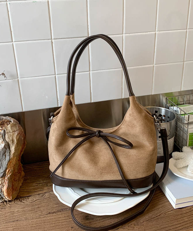 Unique Khaki Bow Suede Patchwork Shoulder Bag