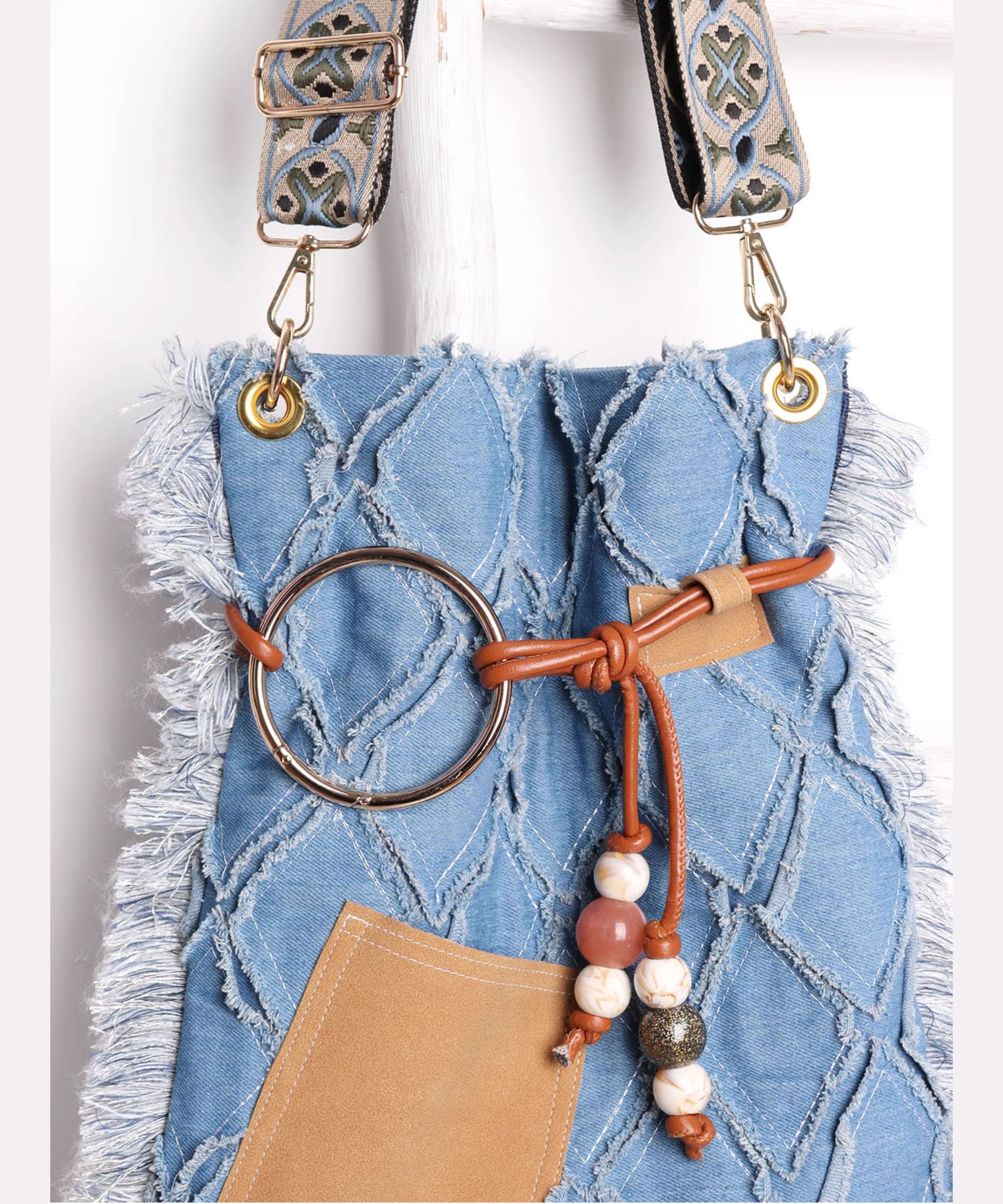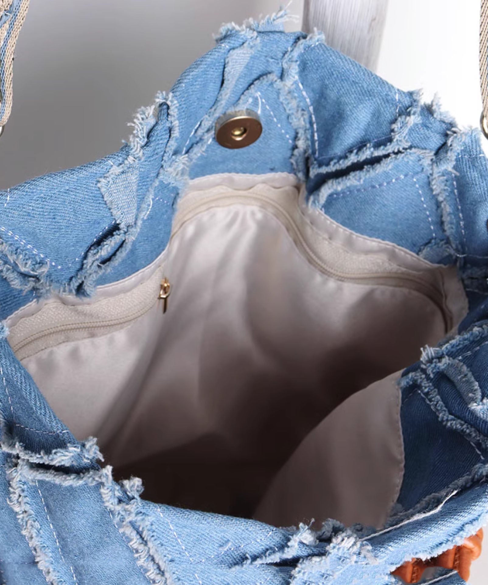Vintage Blue Eyelash Large Capacity Denim Messenger Bag