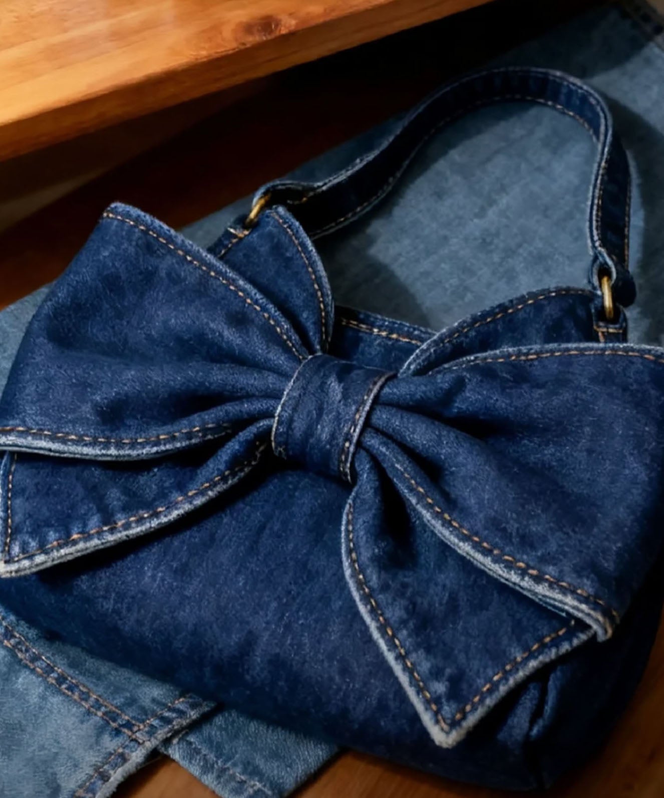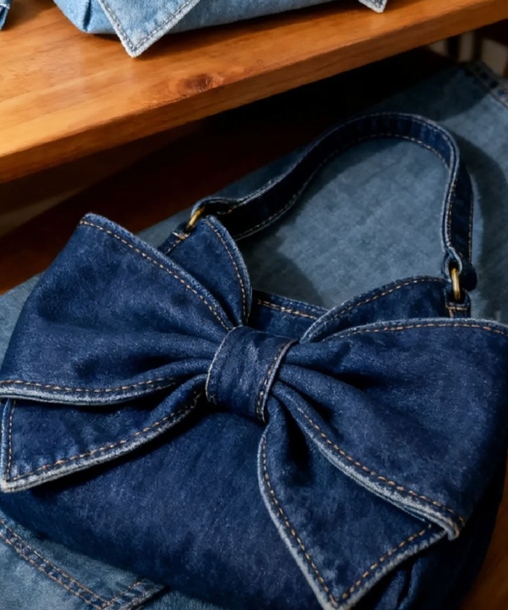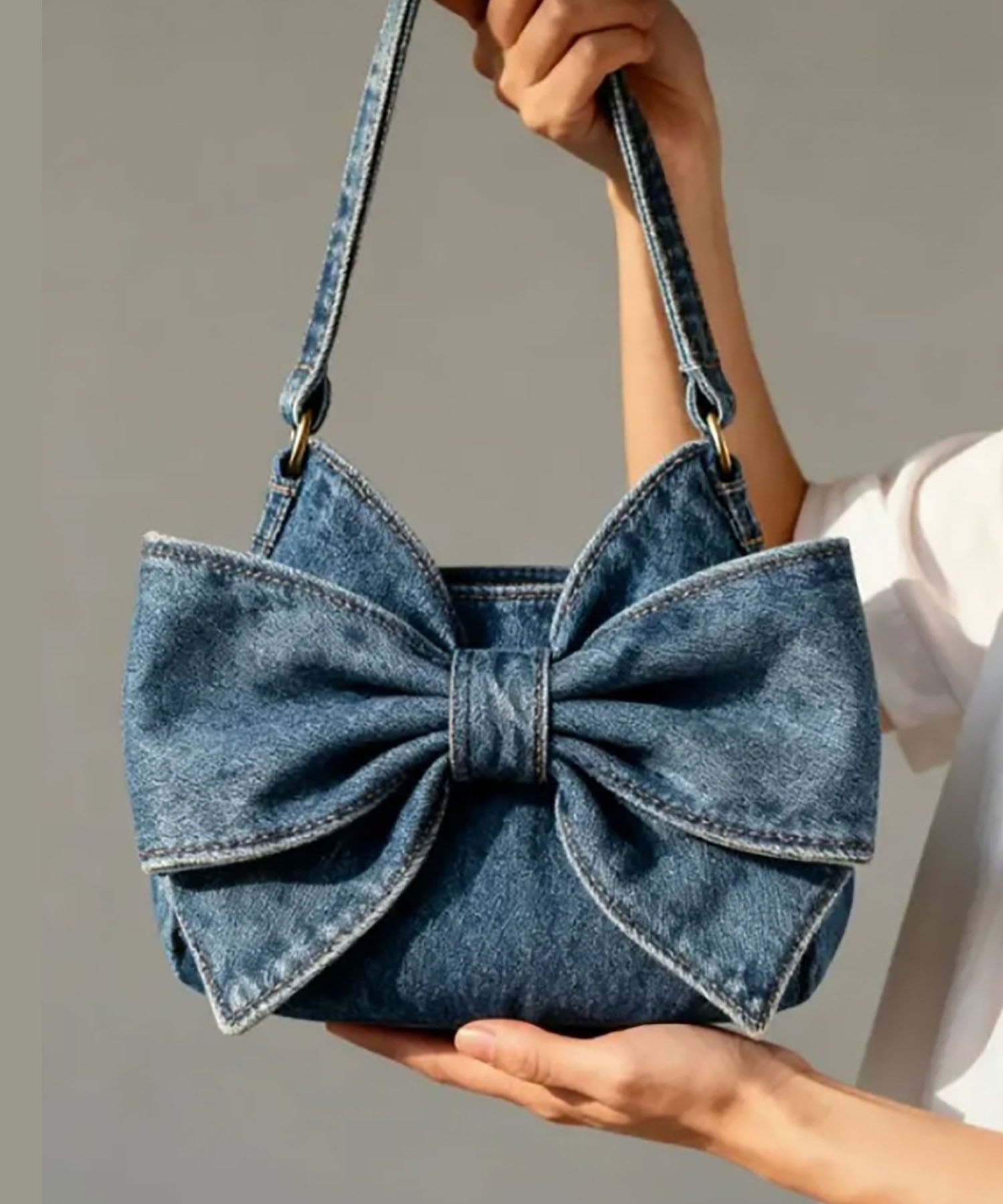 Vintage Navy Bow Solid Durable Denim Shoulder Bags