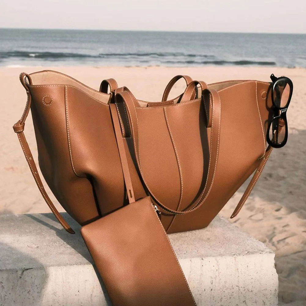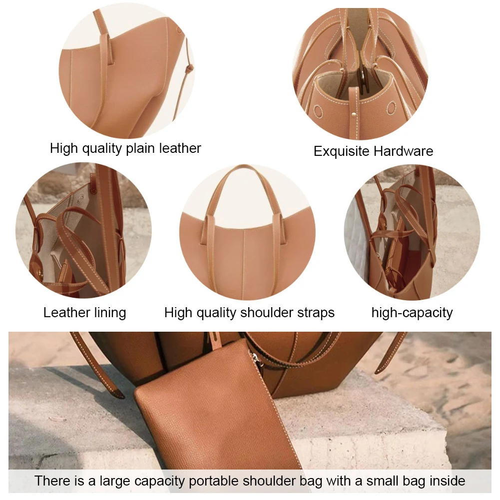 Vintage Shoulder Bag Large Capacity Elegant Shoulder Bag Leather Bag with Matching Clutch
