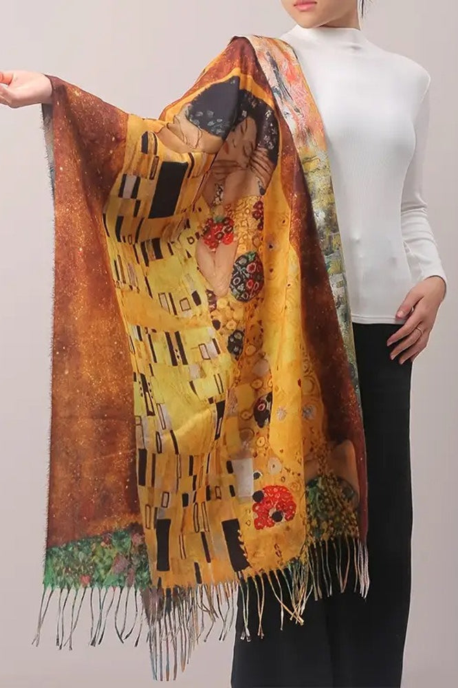 Vintage Van Gogh Print Fringe Wrap Scarf