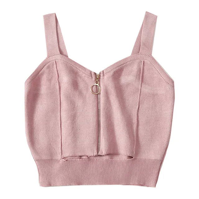 Women Crop Top Club Sexy Zipper Knitting Camisole With Hole Female Tank Tops Ladies Sleeveless Solid Simple Tops Women