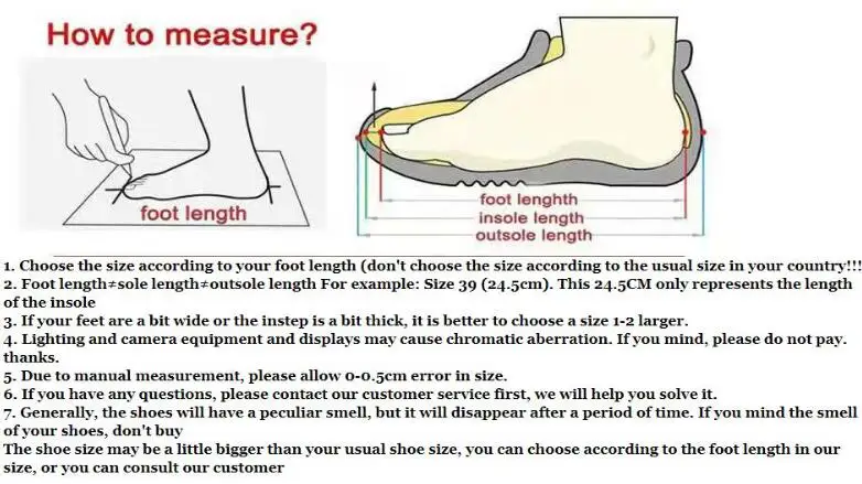 3. If your feet are fat or wide, it is recommended that you choose to increase 1-2 size.