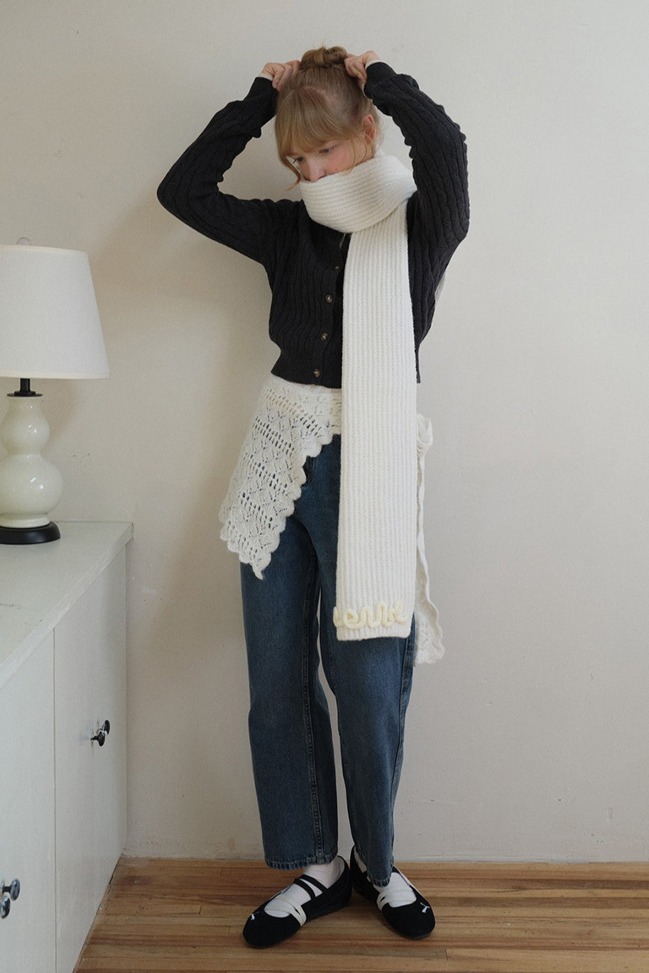 • Length: Mid-length• Composition: Acrylic• Craftsmanship: Knitting• Knitting Method: Weft Knitting• Style: Hand-painted, Punk, Street• Function: Warmth• Details: Lines Scarf