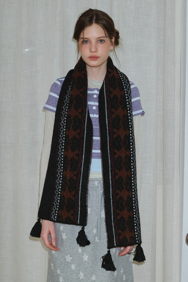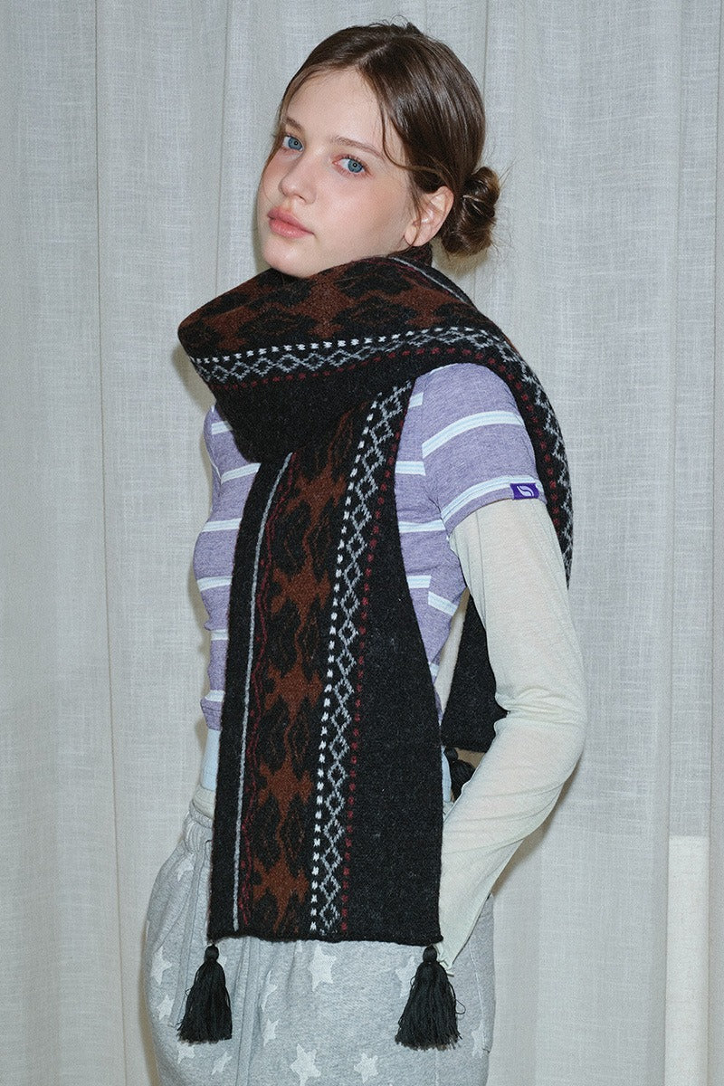 • Length: Mid-length• Composition: Acrylic• Craftsmanship: Knitting• Knitting Method: Weft Knitting• Style: Ethnic• Function: Warmth• Details: Fair Isle Scarf