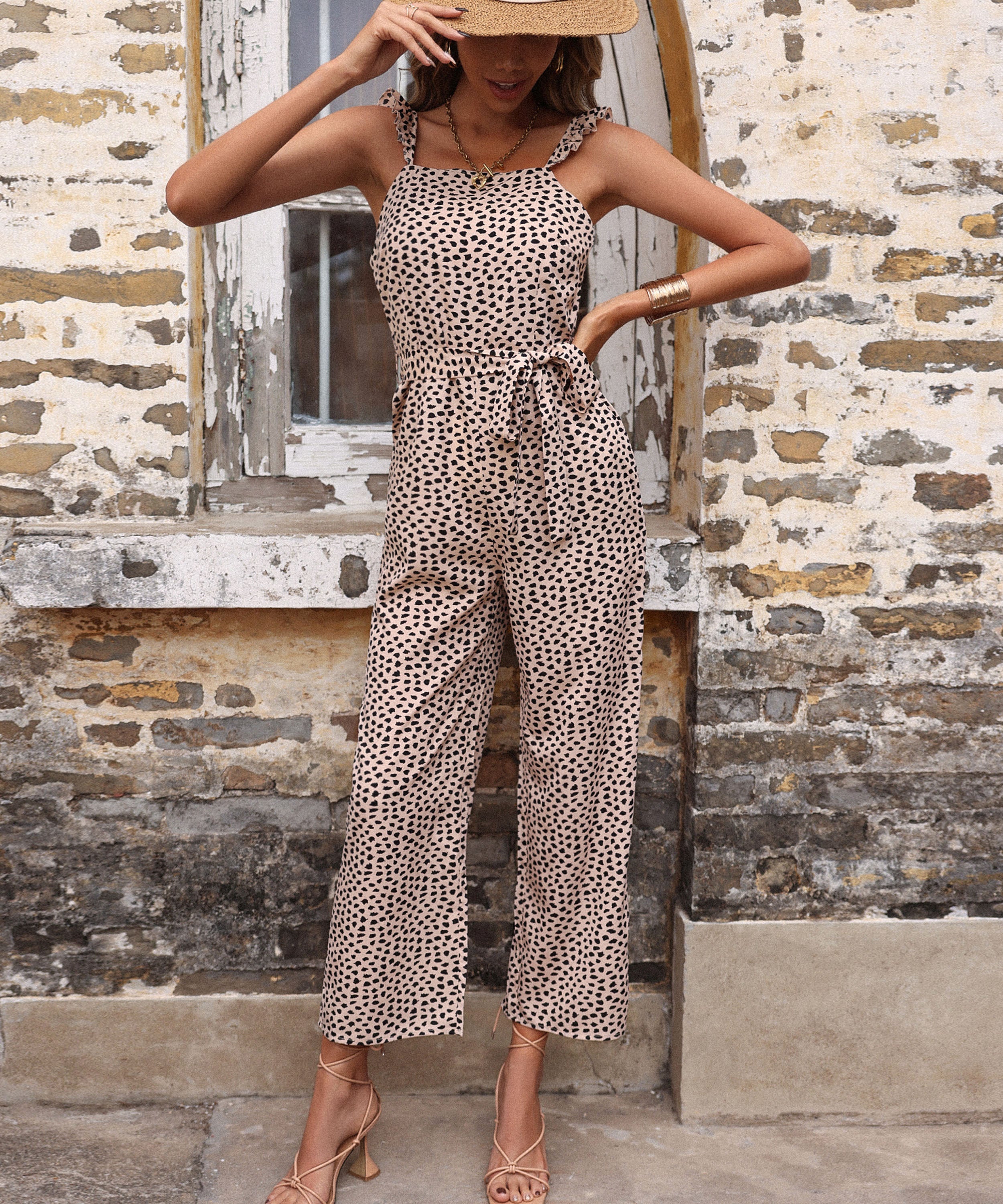 Quick _ you need to look chic at the last minute and still feel comfy and cool._Our zaniya leopard jumpsuit has you covered in style.This_style pairs beautifully with our_summer sandals_and chunky gold accessories.