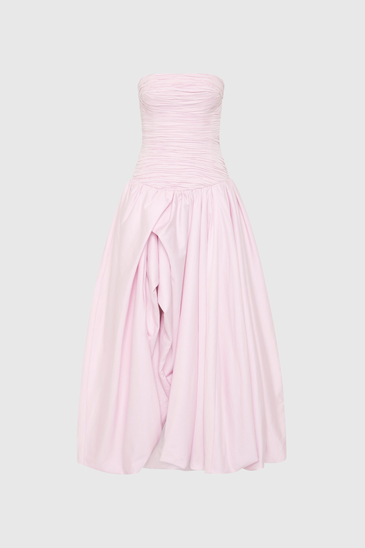The Ziska Strapless Split Ruffle Maxi Dress combines elegant design with sophisticated detailing. Featuring a strapless neckline and a flowing maxi silhouette, it offers a flattering fit that highlights the shoulders and elongates the figure. The dress is enhanced by a stylish side split and layered ruffles, adding movement and a touch of drama. Ideal for formal occasions or upscale events, this dress balances comfort with refined style for a confident, polished look.
